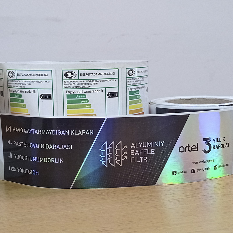 Мы располагаем 3 семицветными флексопечатными машинами, 2 из которых форматом 420 мм, что является наибольшим форматом среди узко рулонных машин в Узбекистане, и это даёт нам возможность более рационально расположить этикетки разных размеров.